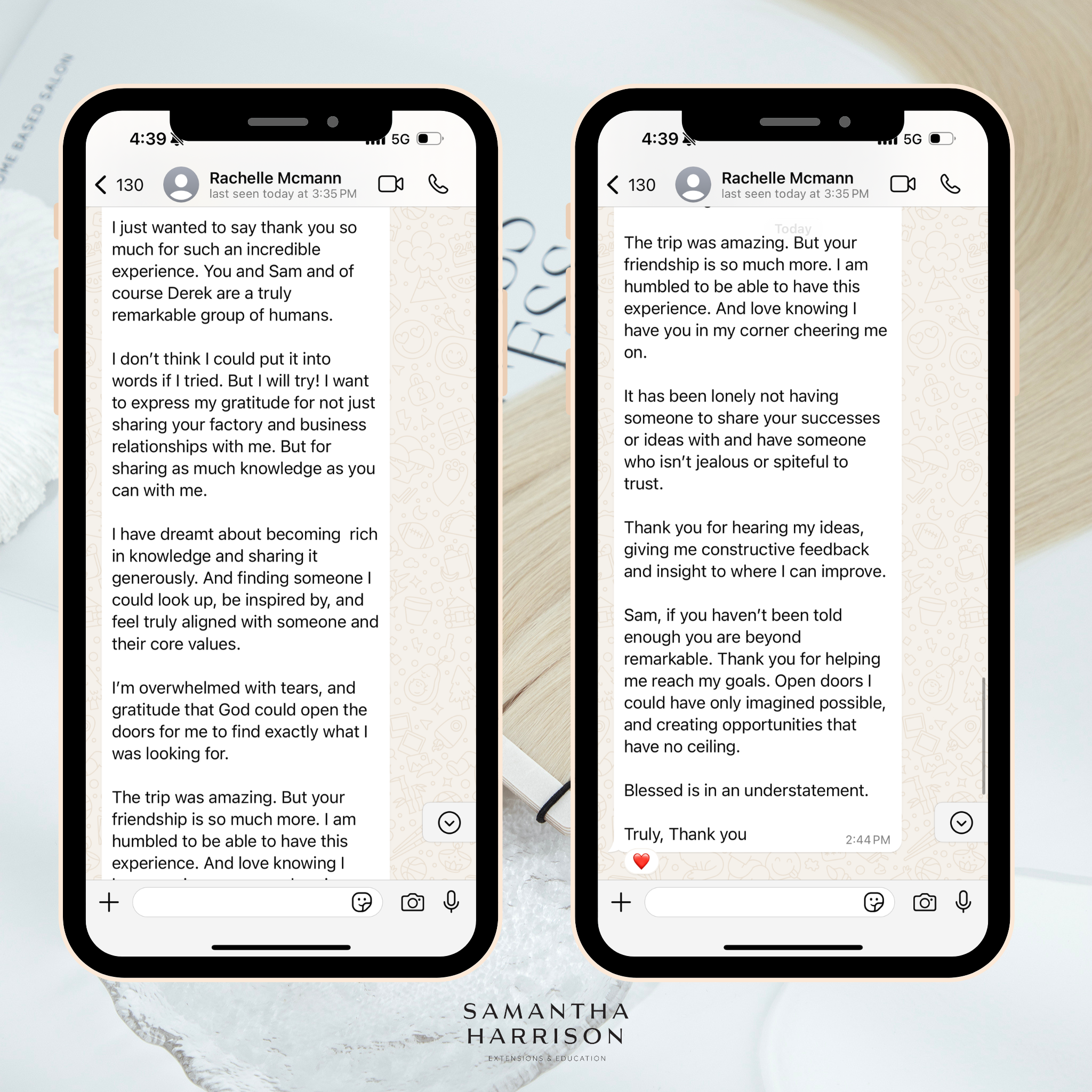 Samantha Harrison Extensions and Education has now taught over 6000+ students worldwide how to start their own 6+ figure hair business.
