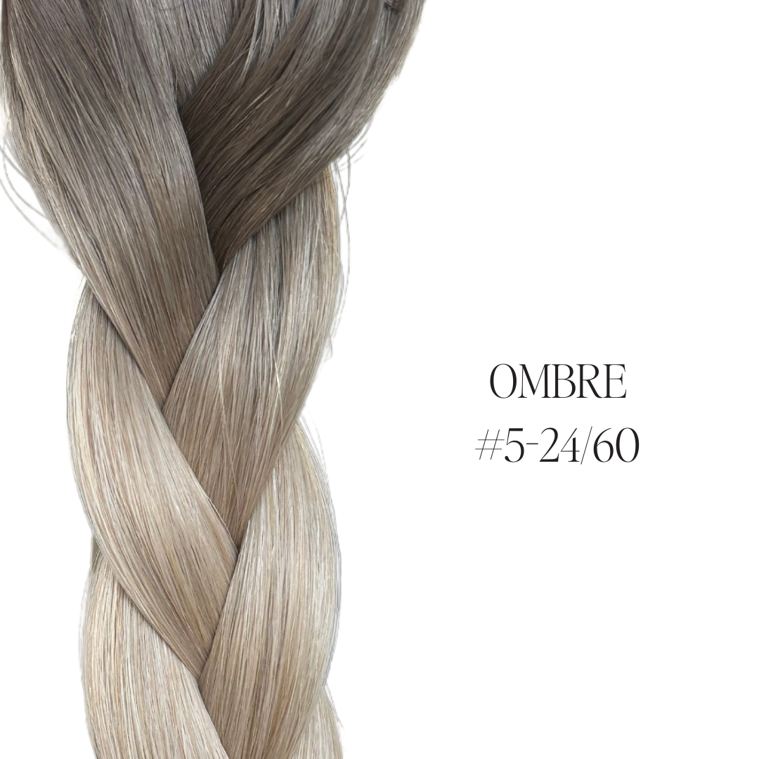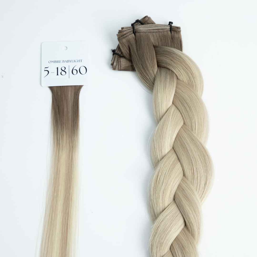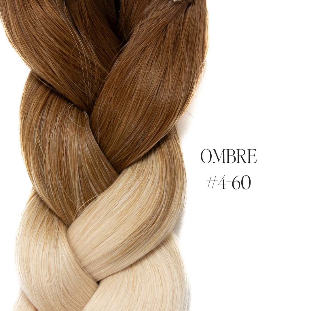 Darker root, transitioning into lighter shades. More ombre options are coming soon, with a 3-inch root length from the bond, available for all blonde shades.