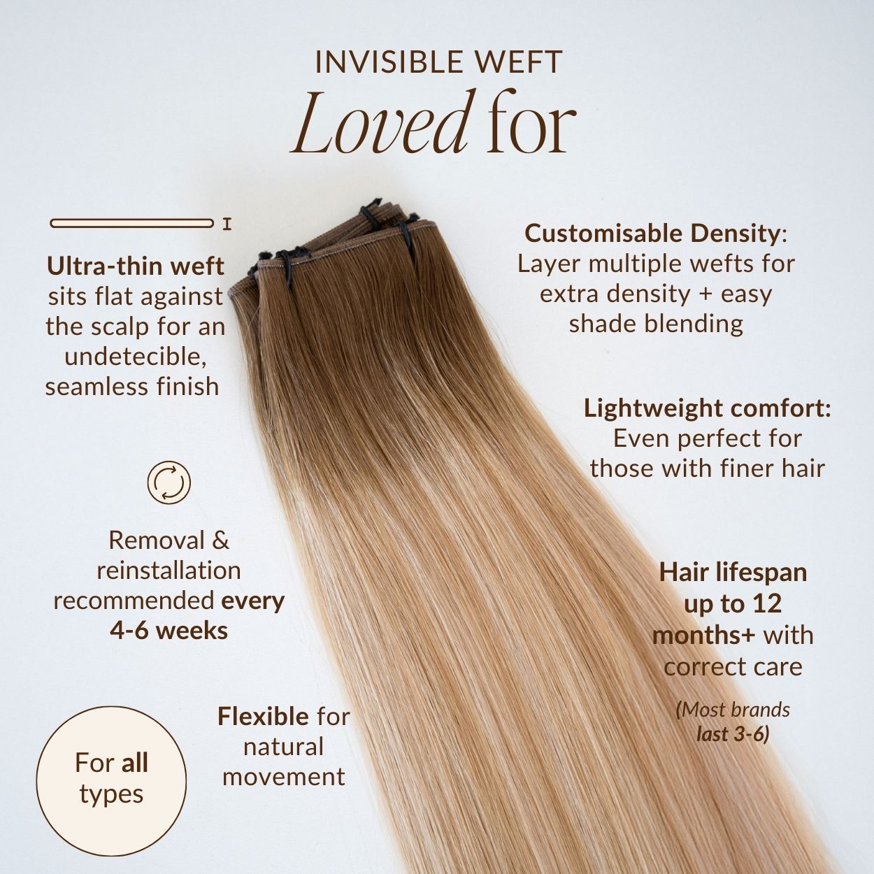 Try our 22" Invisible Weft Hair Extensions for a flawless, natural finish.